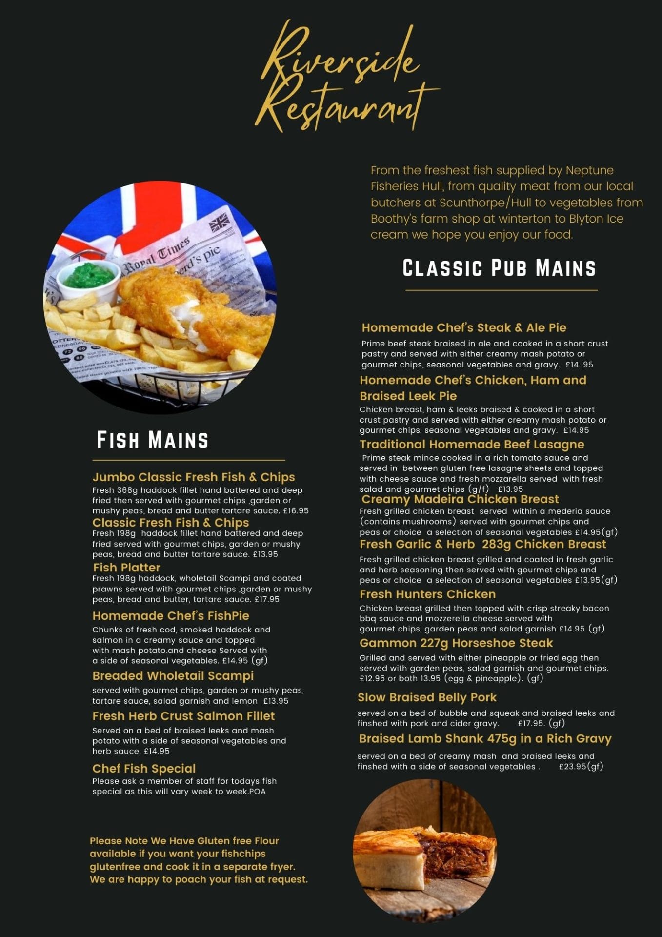Traditional British cuisine is the order of the day, but what’s your preference? Steak and ale pie? A 10oz prime gammon steak with all the trimmings? If you’re of the vegan persuasion, you might be looking for the perfect wild mushroom, chestnut and stilton roast. You need a menu and we’re happy to provide. For enquiries or to book a table at the Riverside Restaurant in Scunthorpe, contact us directly or complete our form.
